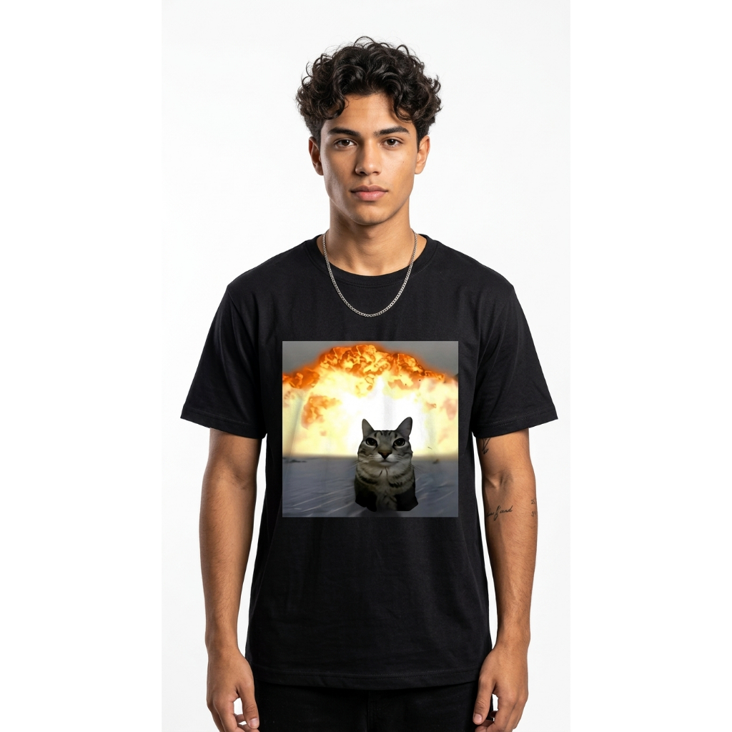 Camisa Gato Explosão Camiseta Engraçado Crewneck Meme Estampa Criativa Look Despojado Unissex