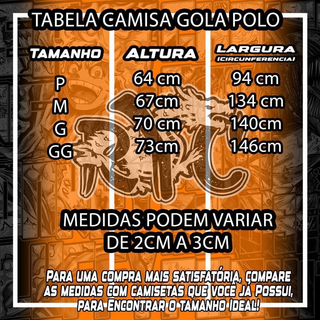 Olá Cliente Ryc. Seja Bem Vindo(a)! Esse anuncio se diz respeito: a uma camisa Gola Polo podendo conter uma estampa de até 9x9 e uma estampa de até 27x40 proporcional a arte original Após a compra, envie sua estampa em PNG sem fundo, caso não consiga nos enviar pelo chat nos envie pelo drive ou por email: [email protected] e nos diga seu endereço de email para localizarmos você. (ATENÇÃO TODAS ESSAS INFORMAÇÕES SÃO IMPORTANTES). A estampa pode apresentar um leve contorno branco devido à técnica DTF utilizada. As medidas da peça podem variar em até 3% para mais ou menos em relação à tabela.(vestuário) As cores dos produtos podem variar conforme o monitor ou lote de produção. Compras feitas em datas diferentes podem ter pequenas variações de cor. Caso a imagem da estampa não seja enviada, será enviada uma peça lisa. Não realizamos trocas por tamanho ou cor via chat — utilize a tabela de medidas para escolher corretamente. Envie sua imagem pelo chat da Shopee, Goo gle Drive ou e-mail. Sempre enviamos uma prévia ilustrativa de sua peça. Se não houver resposta em até 1 dia útil, o pedido seguirá conforme a prévia enviada. Prévia meramente ilustrativa. Considere as medidas fornecidas pelo técnico de estampas. Composição: 52% Algodão e 48% Poliéster. Estampa: DTF (silk digital) Tamanho máximo da Estampa 9x9 e 27x40 Para maior durabilidade, lave no modo delicado, evite alvejantes, secadora e ferro quente. Não esfregue a estampa. Garantia do vendedor: 7 dias