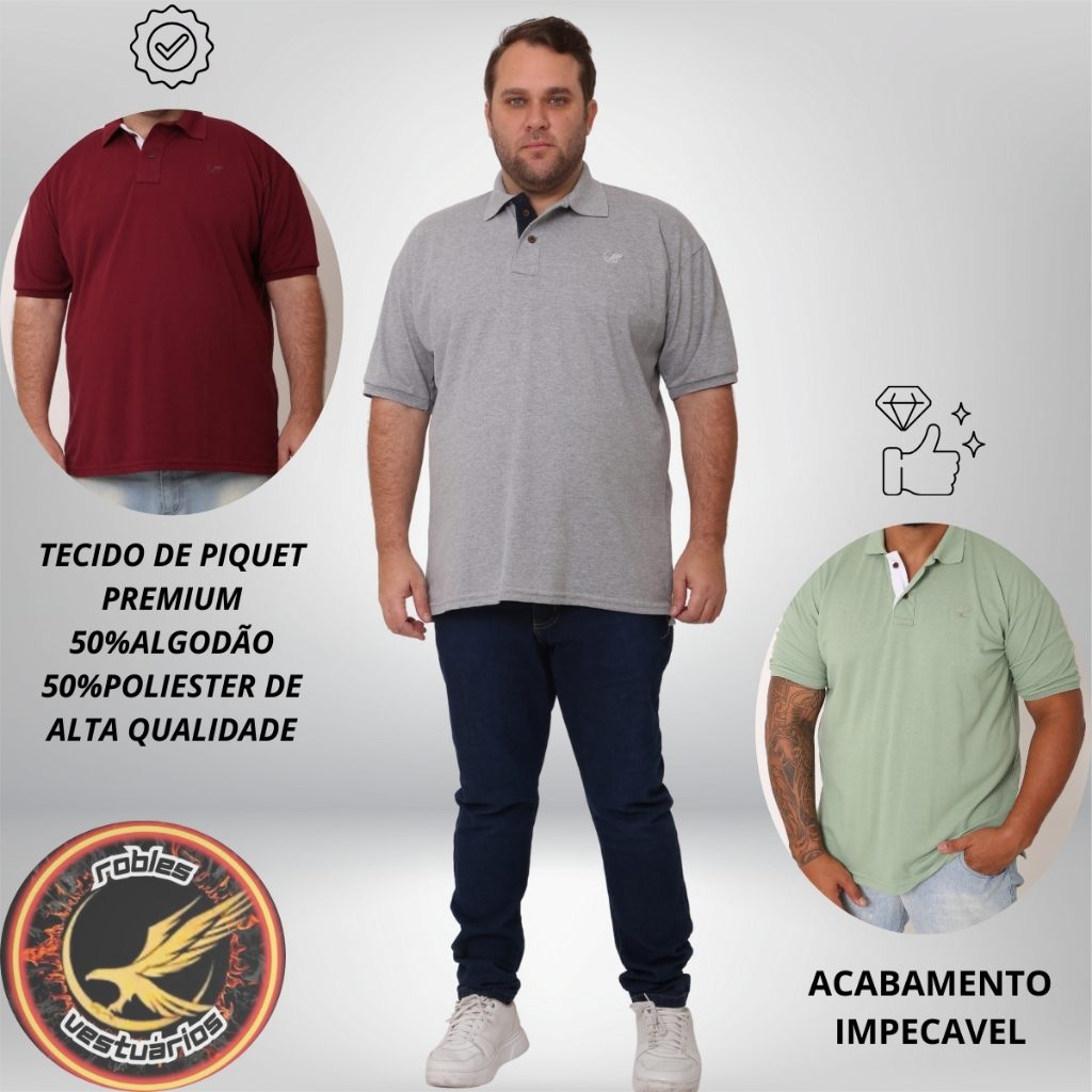 Camisa Gola Polo Piquet Plus Size Robles G4 G5 Extra Grande