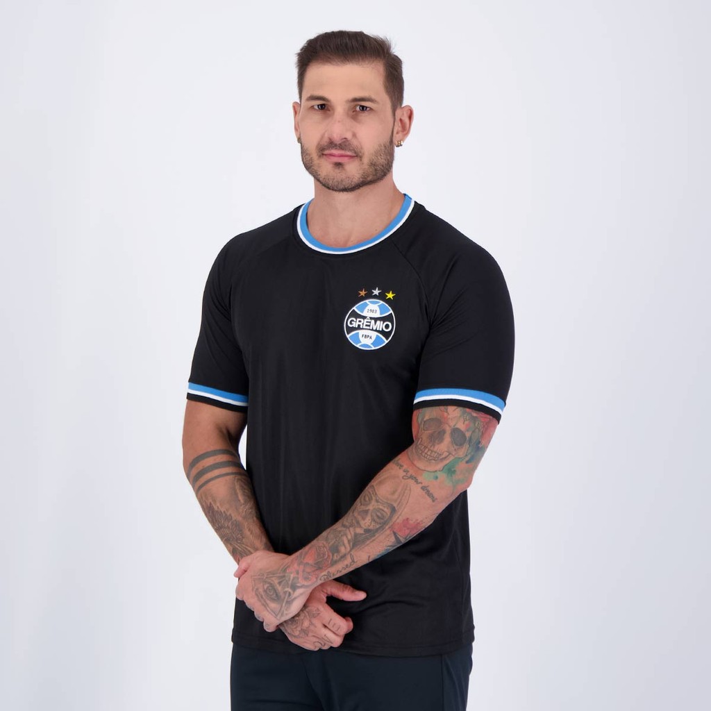Composição: 100% PoliésterCor Predominante: PretaIndicado para: CasualGênero: MasculinoOrigem: NacionalEscudo: BordadoClube: GrêmioManga: CurtaGola: CarecaDimensões aproximadas (A x L):P: 71 x 53 cmM: 73 x 55 cmG: 75 x 57 cmGG: 77 x 59 cmEG (2GG): 79 x 61 cm