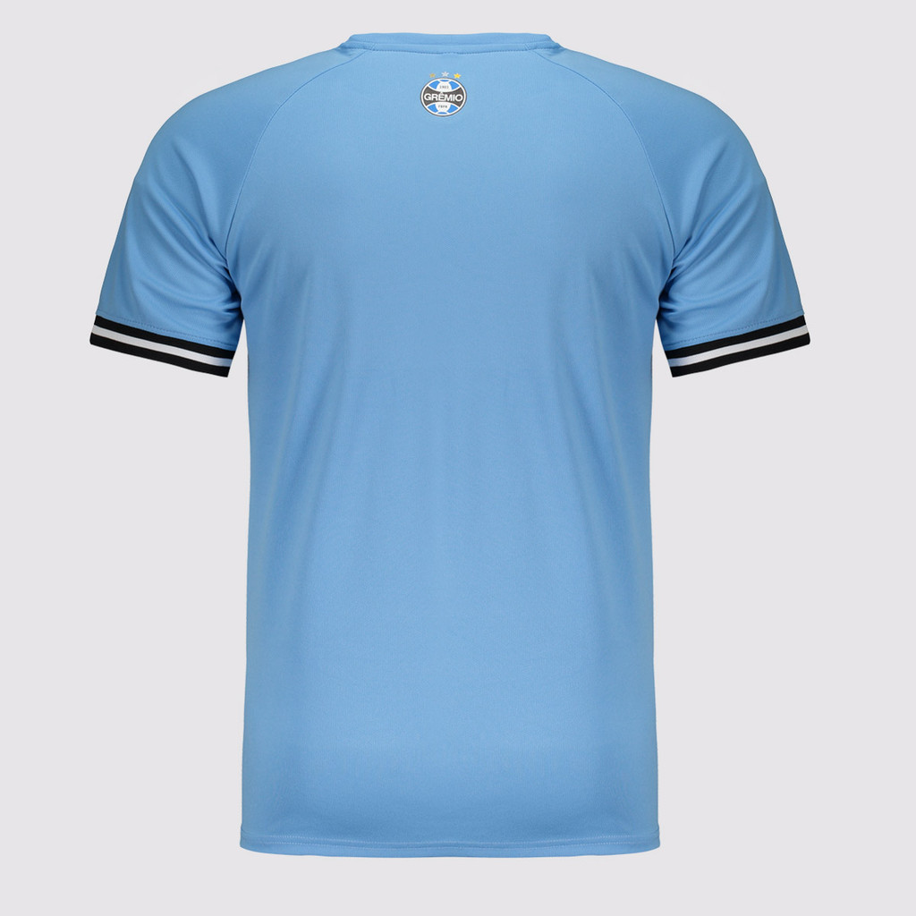 Composição: 100% PoliésterCor predominante: Azul celesteOrigem: ImportadaGênero: MasculinoEscudo: AplicadoClube: GrêmioManga: CurtaGola: CarecaDimensões aproximadas (A x L):P: 71 x 51 cmM: 73 x 53 cmG: 75 x 55 cmGG: 77 x 57 cmEG: 79 x 59 cm