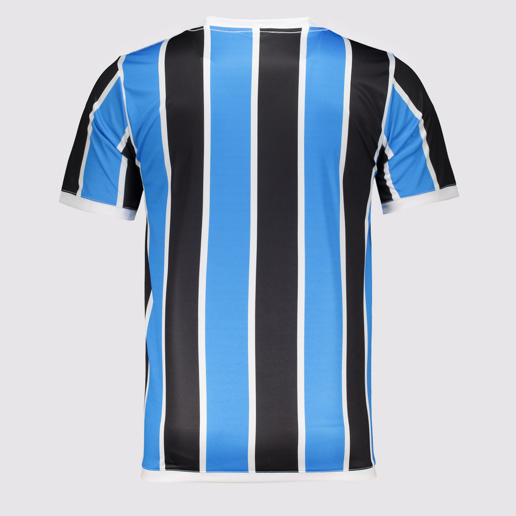 Composição: 100% PoliésterCor predominante: AzulGênero: MasculinoOrigem: NacionalEscudo: BordadoClube: GrêmioManga: CurtaGola: CarecaDimensões aproximadas (A x L):P: 68 x 48 cmM: 70 x 50 cmG: 72 x 52 cmGG: 74 x 54 cmEG: 76 x 56 cm
