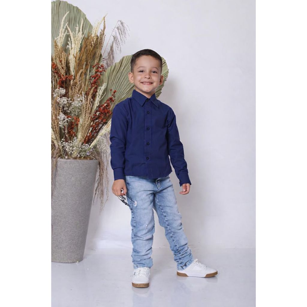 Camisa Infantil Masculina Social Manga Longa Slim Tecido Não Amarrota - Envio Rapido