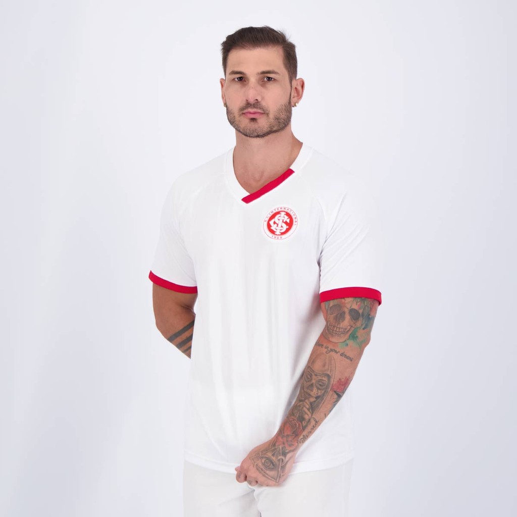 Composição: 100% PoliésterCor predominante: Branca Indicado para: CasualClube: InternacionalGênero: MasculinoEscudo: AplicadoOrigem: NacionalManga: CurtaGola: CarecaDimensões aproximadas (A x L):P: 71 x 53 cmM: 73 x 55 cmG: 75 x 57 cmGG: 77 x 59 cmEG: 79 x 61 cm