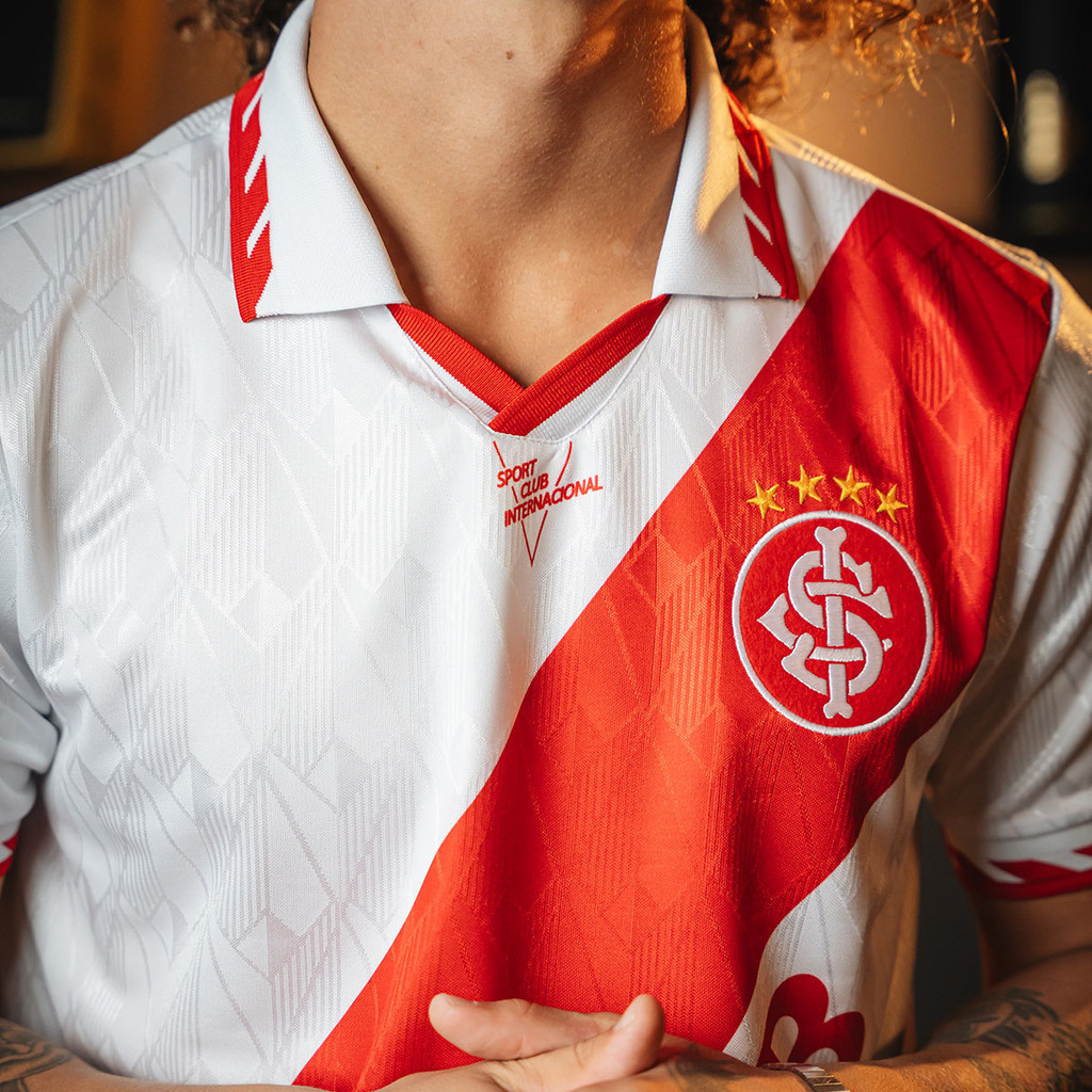 Inspirada no uniforme usado pelo Internacional em 1995, esta camisa retrô resgata um dos modelos mais marcantes da década. Com design clássico e acabamento fiel à época, representa a tradição colorada dentro e fora de campo. Ideal para torcedores que valorizam a história do clube e querem vestir com orgulho uma peça que remete a grandes momentos do Inter. — Característica: - Jacquard 100% poliéster reciclado - Indicado para uso Casual - Escudo bordado em alta definição - Todos os produtos a pronta entrega - Garantia: Contra defeito de fabricação Medidas Aproximadas: Largura x Altura - P (BR): 51 x 69 - M (BR): 54 x 70 - G (BR): 58 x 73 - GG (BR): 60 x 76