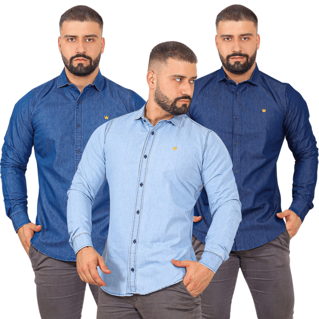 Camisa Jeans Masculina Social Manga Longa Moda Slim Fit Luxo P M G GG