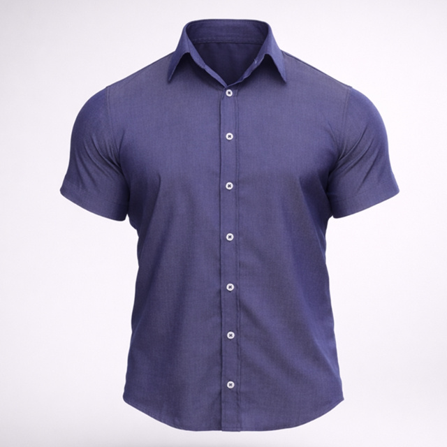 Camisa Jeans Tencel Masculina Social Manga Curta Não Amassa, Premium e Fresca
