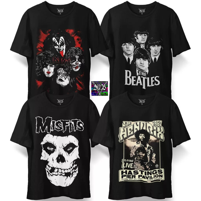 CAMISA JIMI HENDRIX KISS BEATLES MISFITS