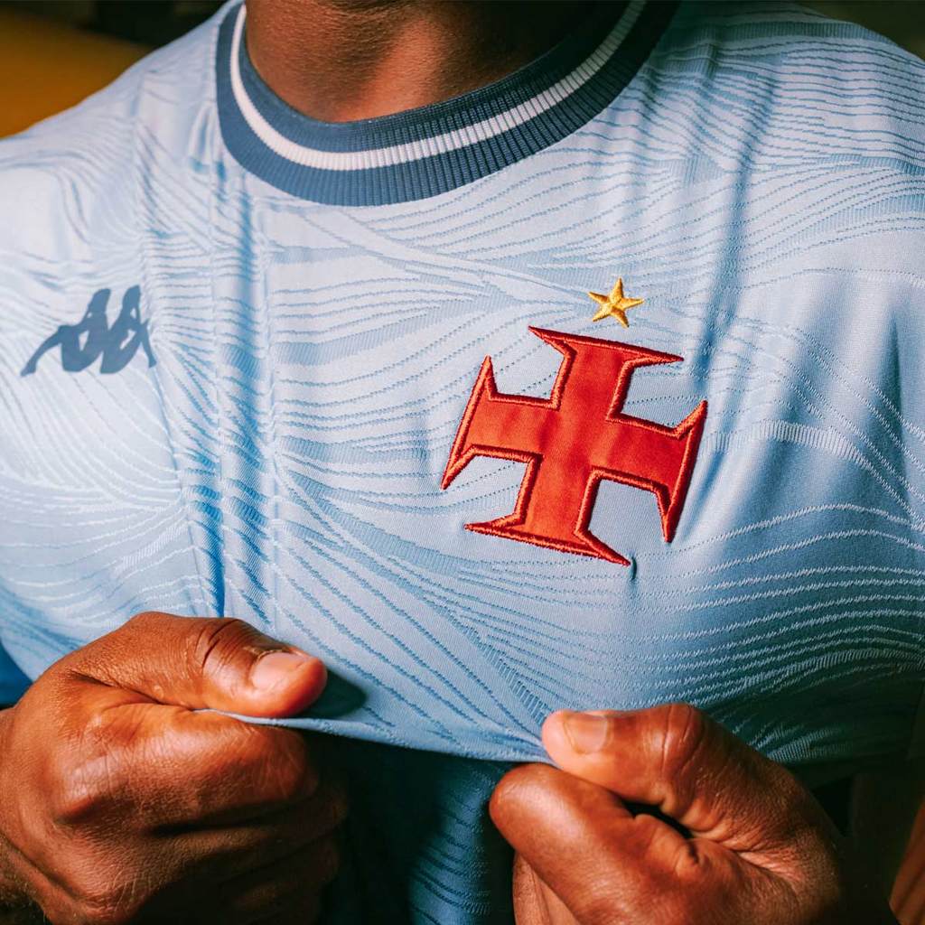 Criada pela Kappa, a camisa III Goleiro do Vasco para 2025, celebra os 80 anos do título de “Campeão de Terra e Mar”. O novo manto do Cruzmaltino é predominantemente azul e traz um grafismo no corpo, em relevo, que lembra as águas do mar, representando a vitória nas águas e homenageia a tradição náutica vascaína.“Campeão de Terra e Mar” Homenageando a simbólica conquista de Campeão de Terra e Mar, a nova camisa III do Cruzmaltino celebra os 80 anos do título invicto do Campeonato Carioca, em 1945, além do Campeonato Carioca de Remo, também invicto. O novo manto celebra as origens do clube e traduz em design a união entre tradição, superação e pioneirismo. A camisa de linha, em tom marrom, faz referência ao título conquistado nos gramados, enquanto a versão de goleiro, em azul, representa a vitória nas águas e homenageia a tradição náutica vascaína.TecnologiasKOMBAT PRO SYTEM®: Técnica autêntica que atribui uma elegância italiana ao design do produto, sustentando-se nas especificidades dos atletas profissionais.Hidroway Protection: Tecido de alta performance com absorção de umidade e secagem rápida, proporcionando melhor conforto e excelente caimento.Composição: 100% PoliésterCor predominante: AzulModelo: Escudo: Gênero: MasculinoOrigem: NacionalManga: CurtaClube: VascoGola: CarecaDimensões aproximadas (A x L):P: 69 x 51 cmM: 71 x 52 cmG: 73 x 55 cmGG: 77 x 58 cmEG (3G): 79 x 63 cmEEEG (5G): 83 x 70 cm7G: 88 x 78 cm