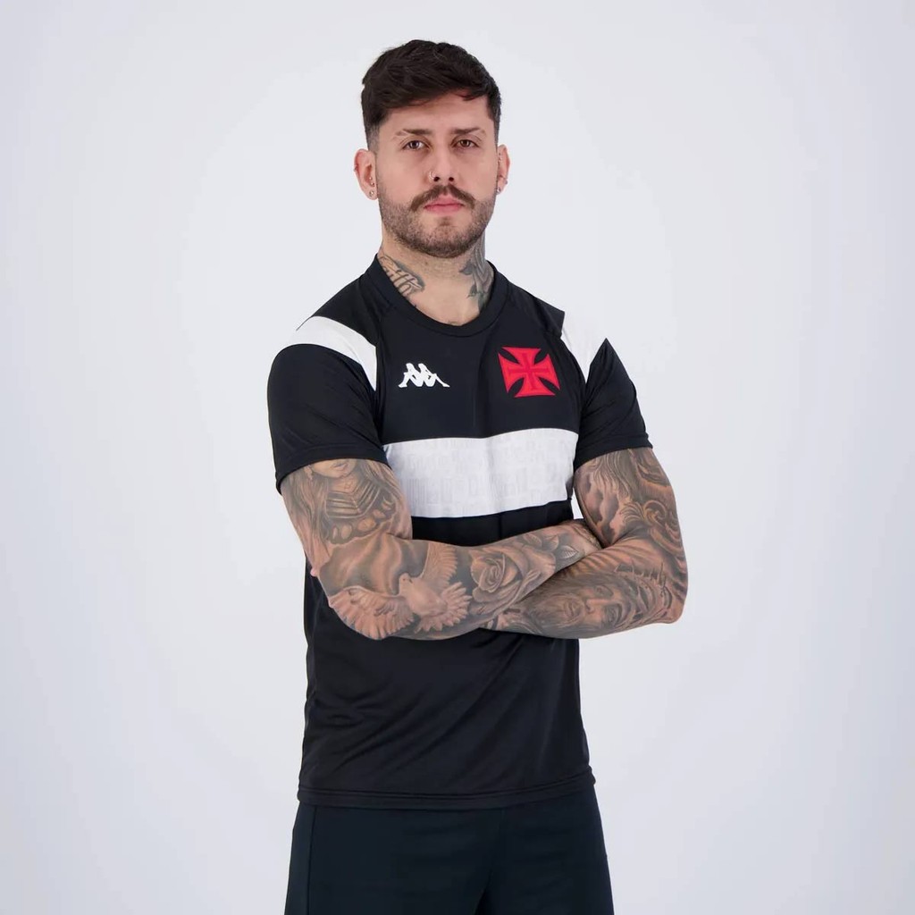 Camisa Kappa Vasco Supporter Cuts Preta e Branca 99 Vegetti