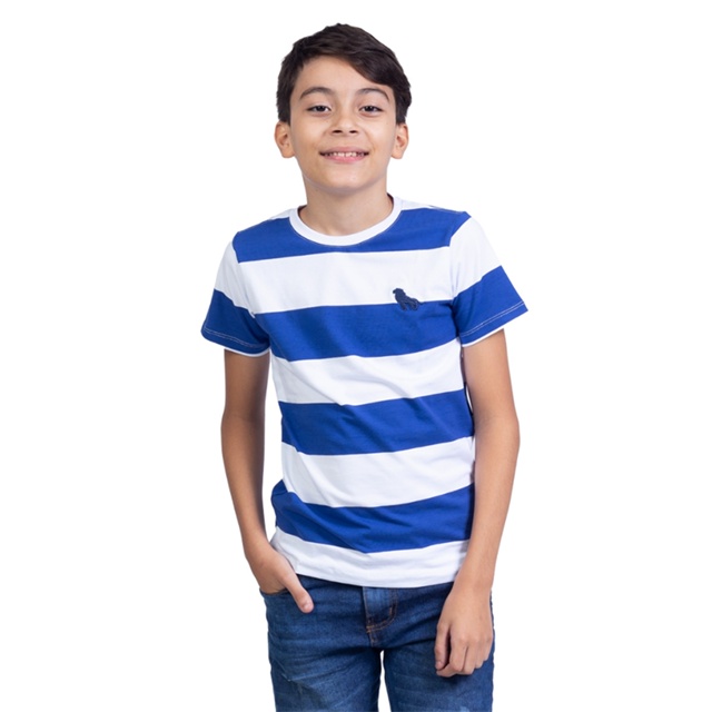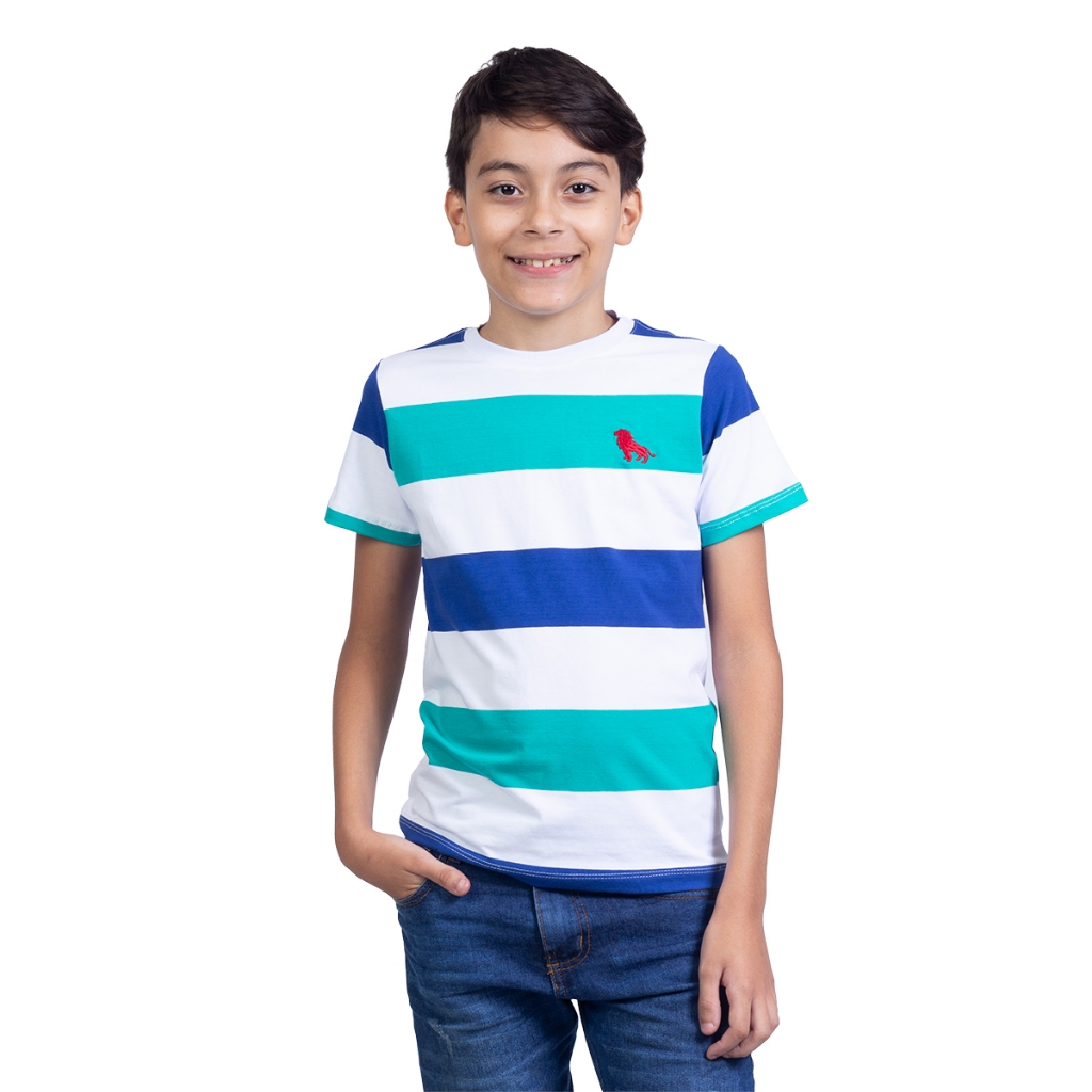 camiseta listrada infantil na marca estilo rei camisa gola careca de tecido algodao e cotton