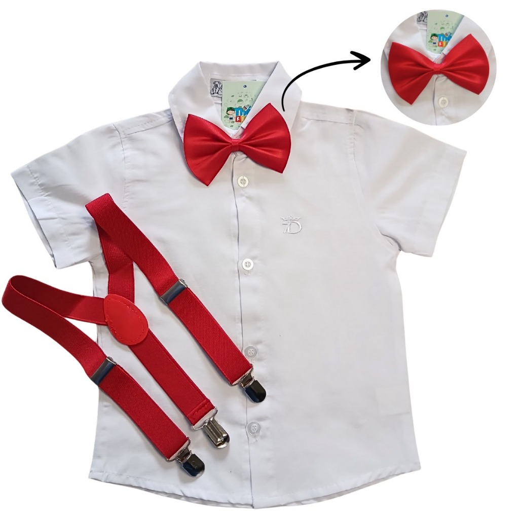 Camisa Manga curta Com Suspensório E Gravata Borboleta P ao 16