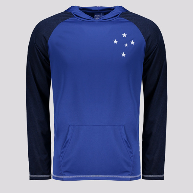 Composição: 100% Poliéster Bolso: Um frontal, estilo canguru Indicado para: Treino Gênero: Masculino Escudo: Estampado Clube: Cruzeiro Manga: Longa Gola: Careca Capuz: Fixo Cor: Azul Dimensões Aproximadas (A x L): P: 70 x 53 cm M: 72 x 55 cm G: 74 x 57 cm GG: 76 x 59 cm