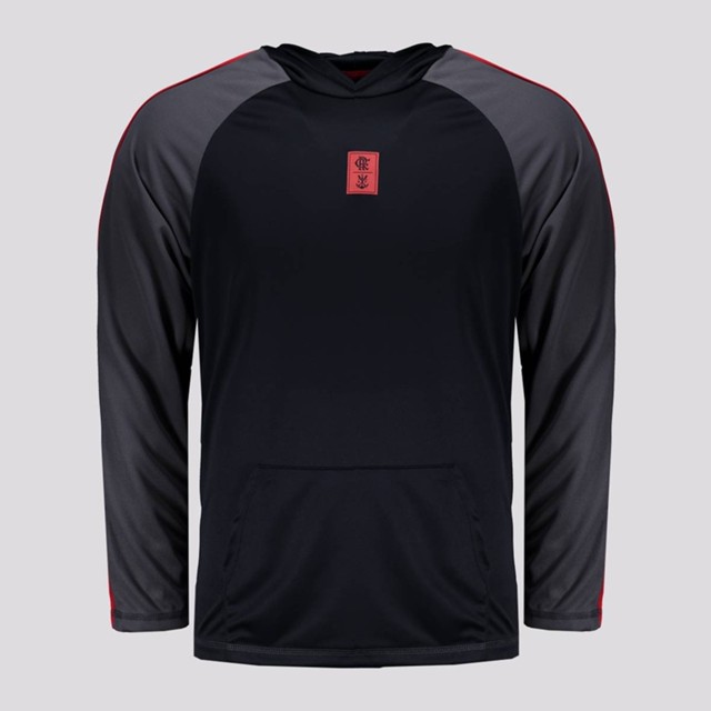 Composição: 100% Poliéster Cor predominante: Preta Indicada para: Casual Gênero: Masculino Origem: Importada Escudo: Estampado Clube: Flamengo Manga: Longa Gola: Careca Capuz: Fixo Forro: Não Dimensões aproximadas (A x L): P (S): 68 x 54 cm M (M): 70 x 56 cm G (L): 72 x 58 cm GG (XL): 74 x 60 cm EG (XXL): 76 x 62 cm