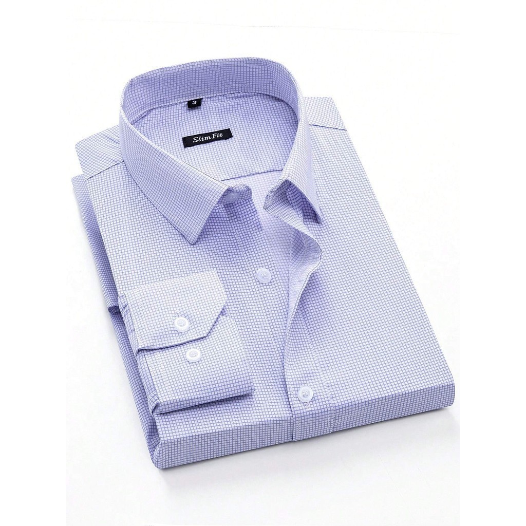 Camisa Masculina de Manga Longa Xadrez Fina sem Bolsos Importada