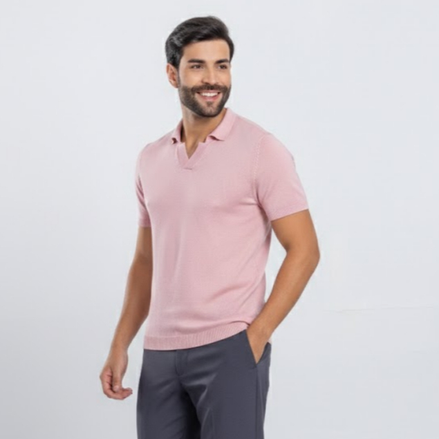 Camisa Masculina Estilo Old Money gola V Polo Trico Algodão Slim Fit Respirável Premium
