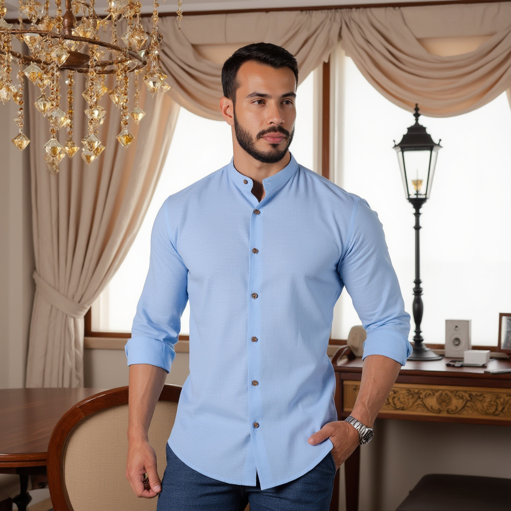 Camisa Masculina Gola Padre Social Casual Linho Algodão Manga Curta Longa Moda Luxo
