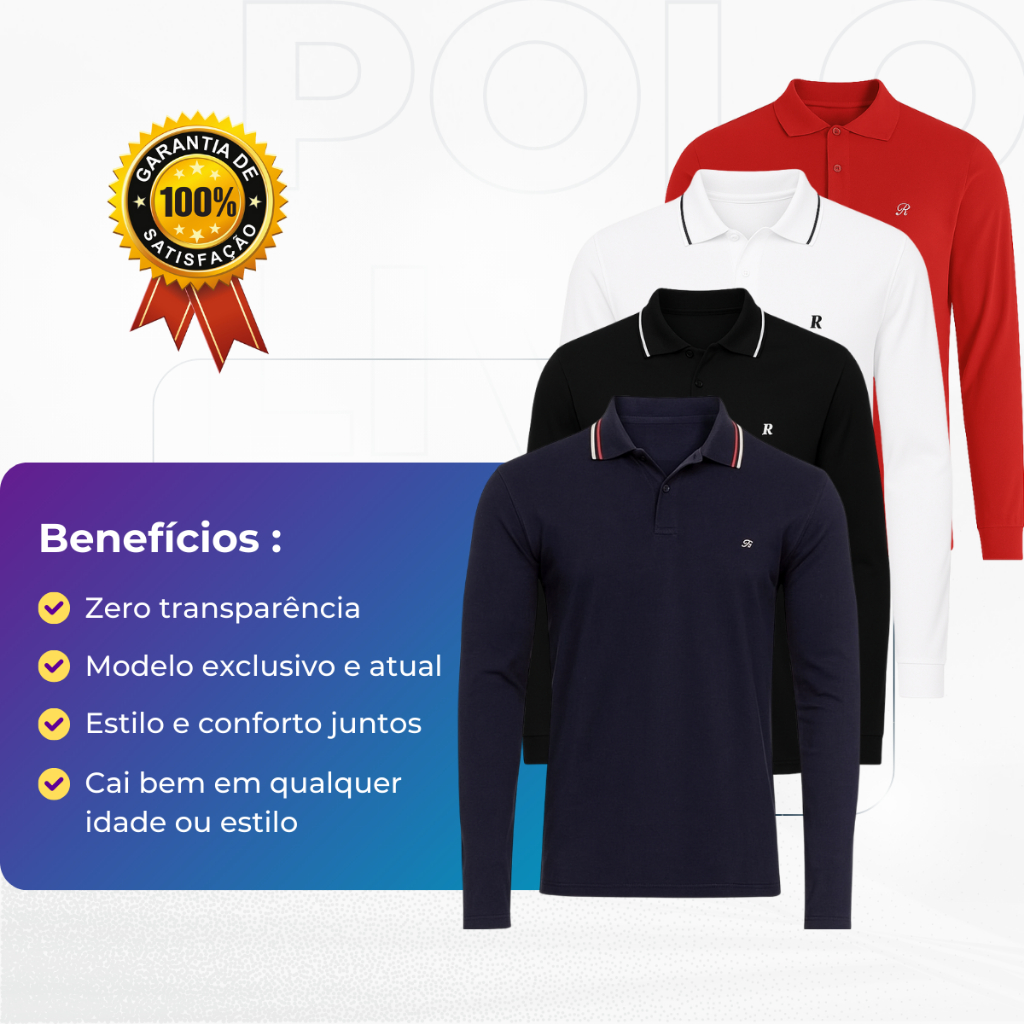 Camisa Masculina Gola Polo Manga Longa 100% Algodão Blusa Premium, uma opção sofisticada e confortável
