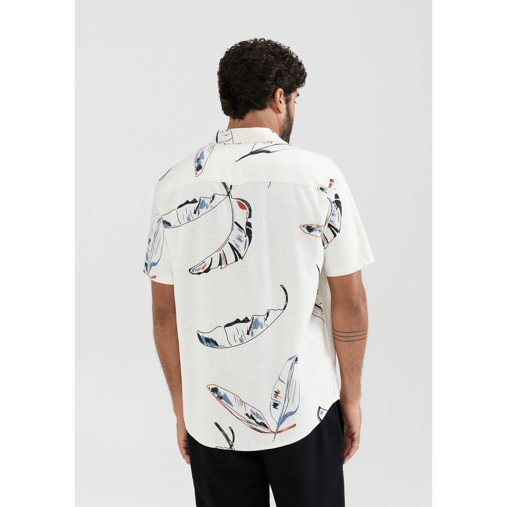 Camisa Masculina Manga Curta Estampada Em Linho