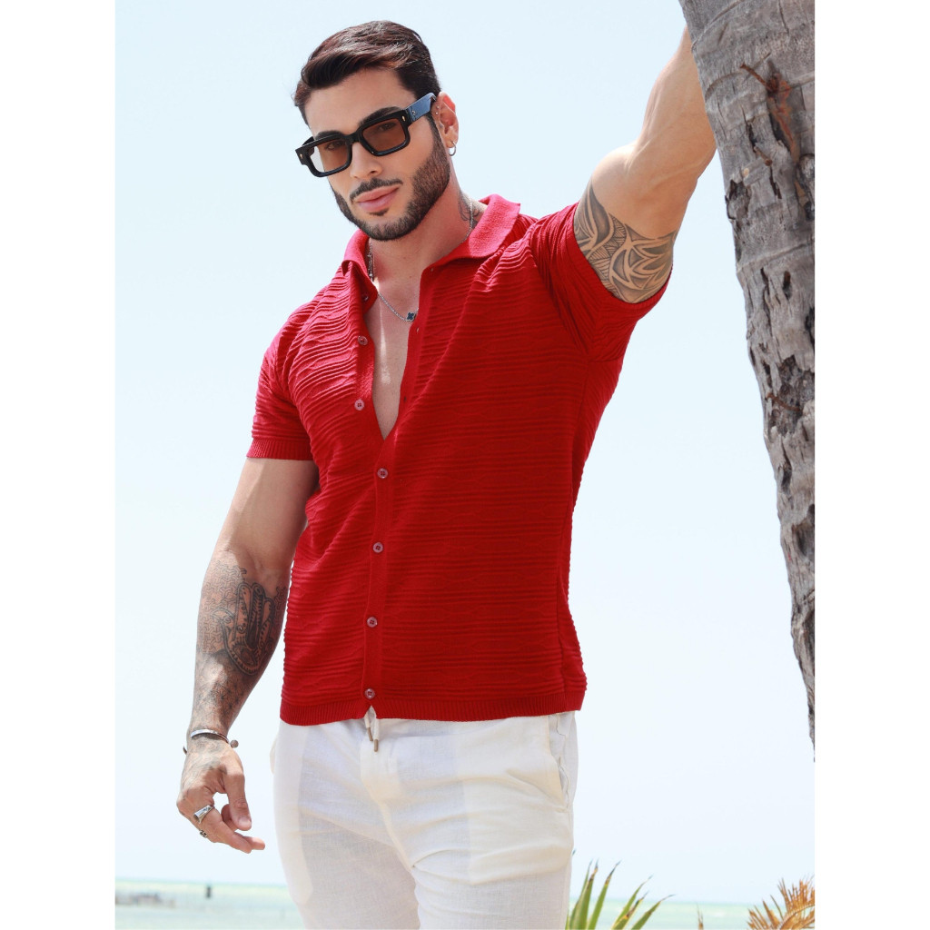 camisa masculina manga curta gola polo tricot blusa verão primavera homens casual alta qualidade