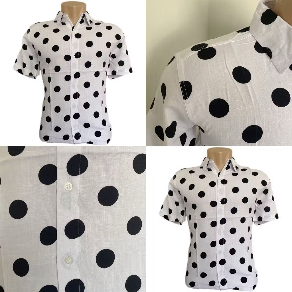 Camisa Masculina Slim Curta Social Estampada Bolinha