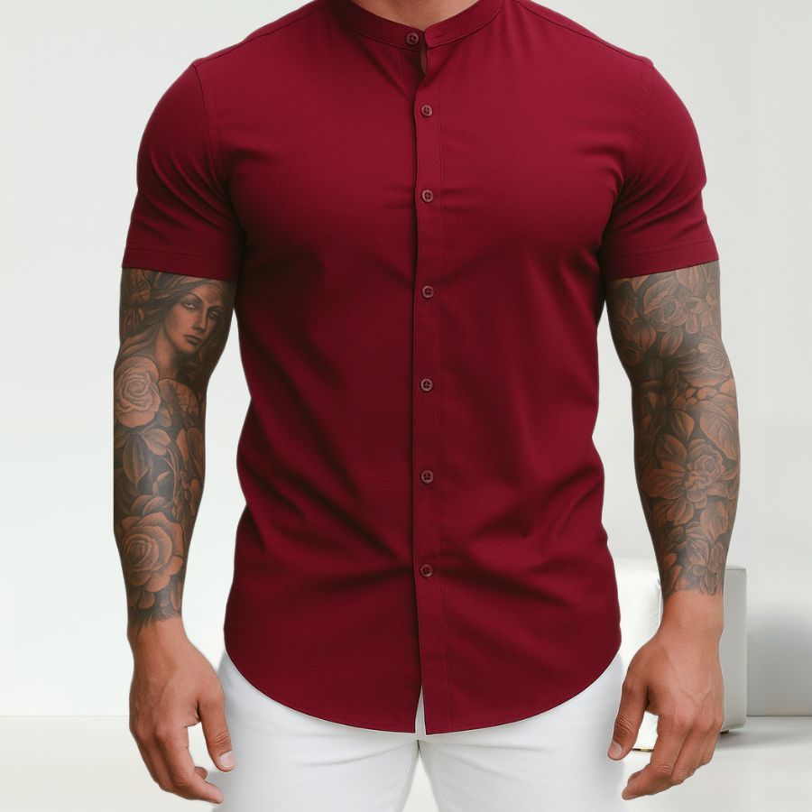 Camisa Masculina Social Gola Padre Manga Curta Slim Premium Slim