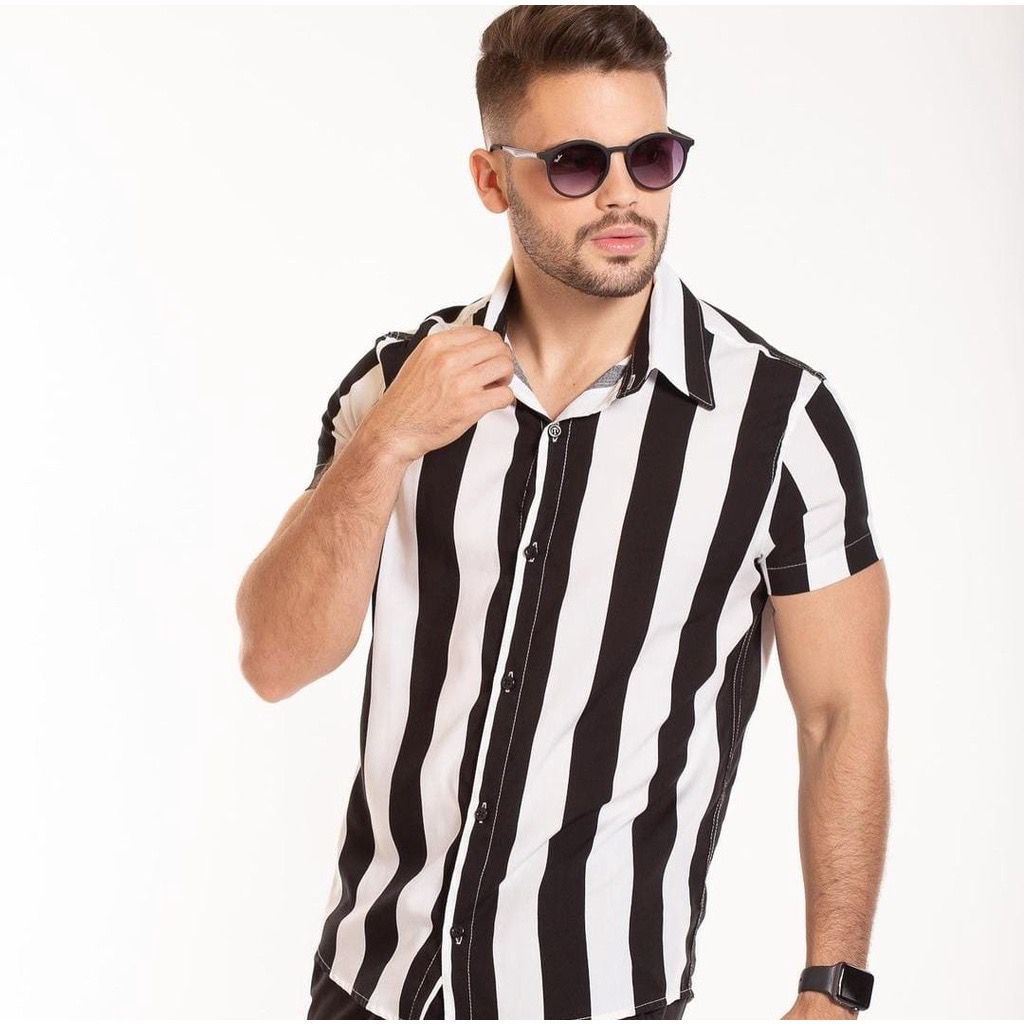 camisa masculino manga curto listrada slim fit adulto verao modas manga curto masculina slim fit TECIDO: viscose COMPOSIÇÃO: 100% VISCOSE TAMANHOS: P - M - G - GG * GUIA DE MEDIDAS TAMANHOS LARGURA COMPRIMENTO P - 52 CM P- 70 CM M - 54 CM M- 72 CM G - 57 CM G -74 CM GG- 60 M GG - 78CM