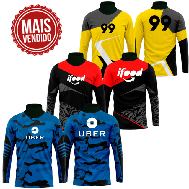 Camisa Moto Uber 99 Pop Ifood Manga Longa Sublimada Gola Alta Ideal para Motoqueiros e Motoristas de Aplicativo