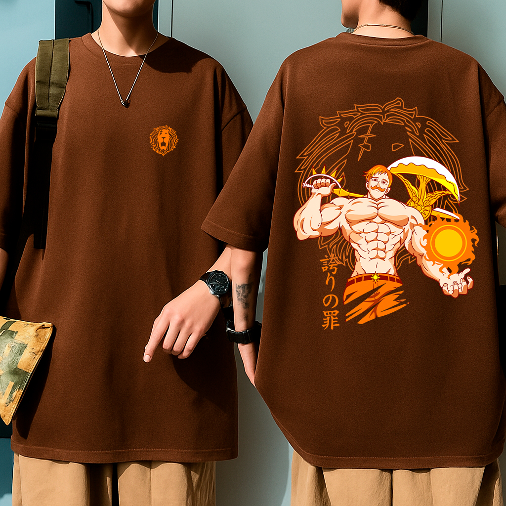 Camisa Oversized Estampada Anime 7 Pecados Escanor Orgulho Unissex Fogo Camiseta 100% Algodão