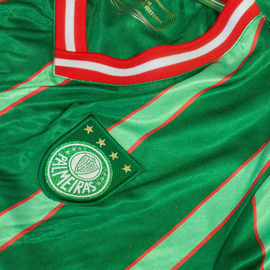 A camisa que carrega mais de um século de história Uma homenagem a uma das camisas mais elegantes da história do Palmeiras. A Retrôgol recria o modelo inspirado na temporada de 2001, trazendo o visual clássico do Verdão com suas tradicionais listras verticais em verde e tons claros, combinadas com detalhes em vermelho na gola e nas mangas — um design que marcou época. Produzida em tecido poliéster premium, a peça oferece conforto, leveza e ótima respirabilidade para o dia a dia. O escudo bordado do Palmeiras no peito reforça o acabamento de alto nível e valoriza o visual retrô que atravessa gerações. Nas costas, o detalhe “2001” bordado relembra uma fase importante da história do clube e transforma a camisa em uma peça cheia de identidade para quem vive o futebol além das quatro linhas. Perfeita para o torcedor que valoriza tradição, estilo e história. Uma camisa que não é apenas roupa. É memória. É orgulho. É Palmeiras. Feita para o Torcedor Raiz: Tecido leve e confortável Escudo bordado de alta definição Design retrô inspirado em 2001 Modelagem confortável para uso casual Ideal para quem carrega a história do Verdão no peito Informações Técnicas: Composição: 100% Poliéster Cor predominante: Verde Clube: Palmeiras Indicada para: Casual Gênero: Masculino Origem: Nacional Escudo: Bordado Manga: Curta Medidas Aproximadas (Altura x Largura) P: 71 x 51 cm M: 74 x 53 cm G: 76 x 56 cm GG: 78 x 59 cm