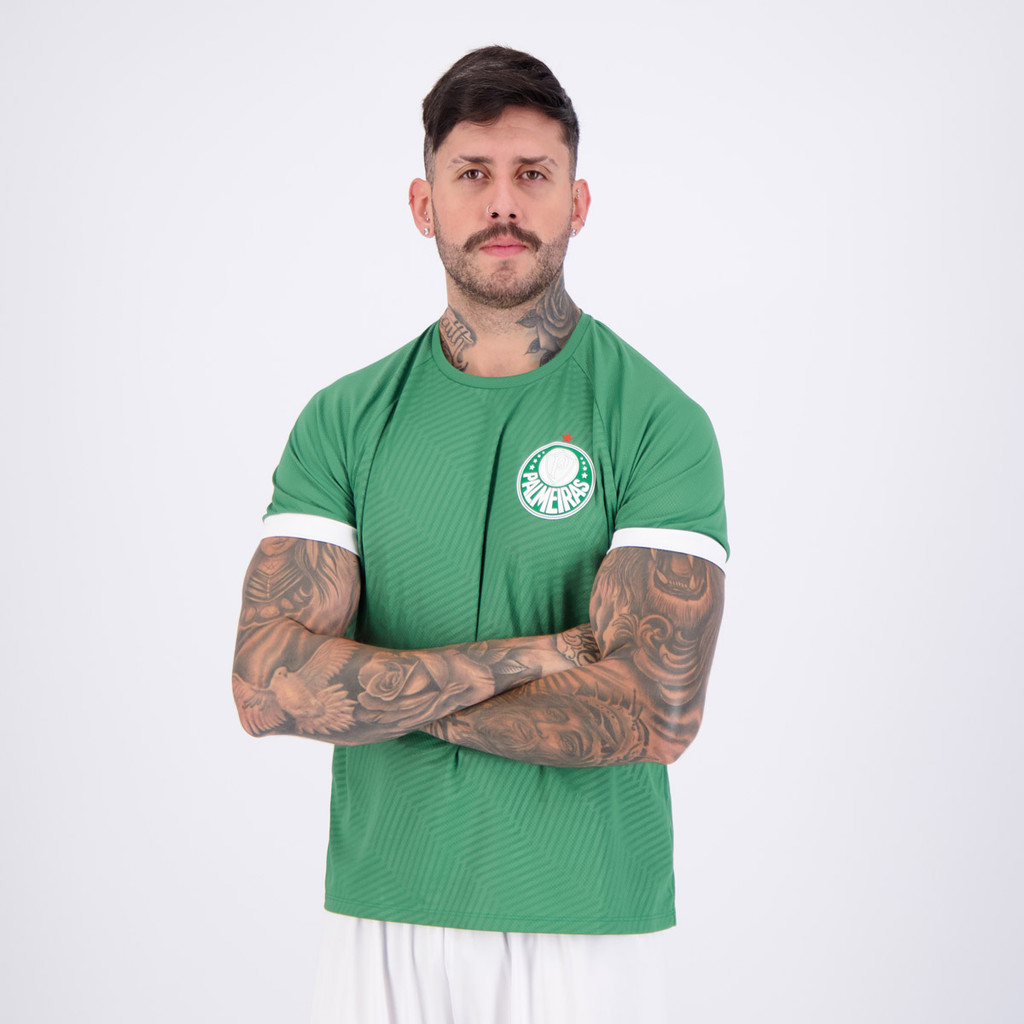 Composição: 100% PoliésterCor predominante: VerdeIndicada para: CasualGênero: MasculinoOrigem: NacionalClube: PalmeirasEscudo: EstampadoManga: CurtaGola: CarecaDimensões aproximadas (A x L):P: 67 x 51 cmM: 69 x 53 cmG: 71 x 55 cmGG: 73 x 57 cm