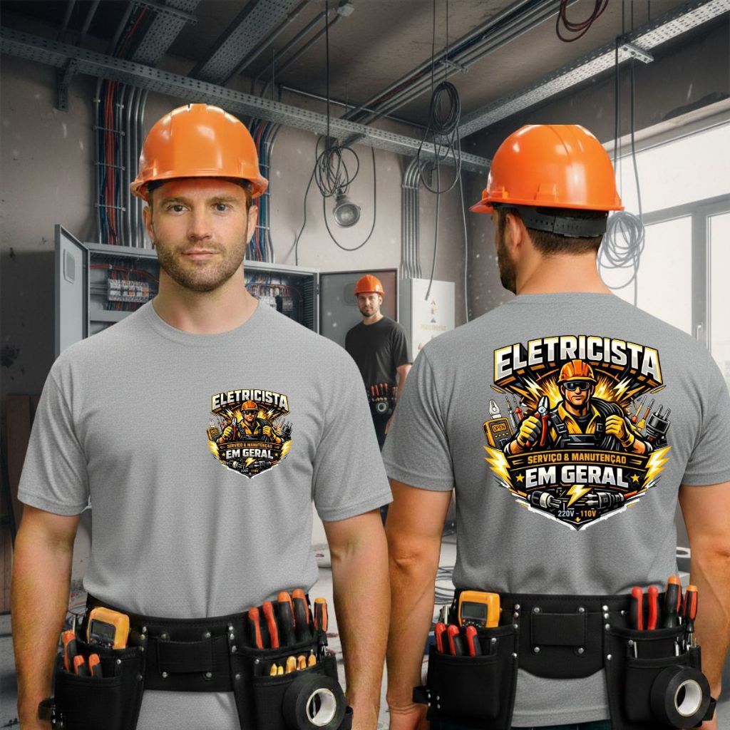 Camiseta Eletricista – Serviço & Manutenção em Geral Esta camiseta foi desenvolvida especialmente para eletricistas e profissionais da área elétrica que valorizam identidade, estilo e profissionalismo no dia a dia de trabalho. Com um visual marcante e moderno, ela une conforto, resistência e uma estampa que representa com orgulho a profissão. - Sobre a Estampa A estampa traz um design exclusivo e impactante, com ilustração de um eletricista equipado com ferramentas, raios elétricos e elementos que remetem à manutenção e serviços elétricos em geral. O destaque fica para o texto “ELETRICISTA – SERVIÇO & MANUTENÇÃO EM GERAL”, reforçando autoridade, credibilidade e experiência profissional. A aplicação frontal em tamanho discreto e a estampa grande nas costas garantem visibilidade, identidade e presença forte em qualquer ambiente de trabalho. - Modos de Uso Recomendados - Ideal para uso diário no trabalho - Perfeita como uniforme profissional - Indicada para serviços residenciais, comerciais e industriais - Ótima para obras, reformas e manutenções elétricas - Excelente para atendimento ao cliente e visitas técnicas - Pode ser usada em empresas, equipes de manutenção ou eletricistas autônomos - Também indicada para uso casual, mantendo estilo profissional fora do expediente - Modo de Limpeza e Conservação - Lavar à mão ou na máquina em ciclo delicado - Utilizar sabão neutro - Não usar alvejantes - Lavar preferencialmente do avesso, preservando a estampa - Não passar ferro diretamente sobre a estampa - Secar à sombra para maior durabilidade das cores Esses cuidados garantem maior vida útil da estampa e do tecido. - Cores Disponíveis Disponível em uma variedade de cores pensadas para combinar com o ambiente profissional e o dia a dia: - Preto -Cinza - Branco - Off White - Bordô - Grafite Cores versáteis, fáceis de combinar e ideais tanto para uso individual quanto para padronização de equipes.
