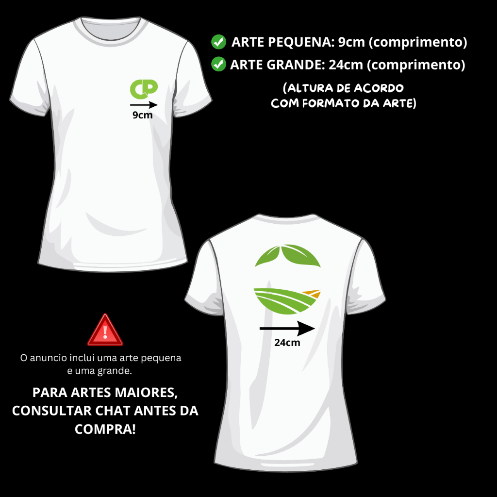 Seja bem vindo à nossa loja! Atuamos no mercado de forma online com produtos de ótima qualidade e durabilidade. Nossas camisetas são confeccionadas em tecido 100% algodão fio 30.1 penteado. * Gola Redonda * Tamanho Unissex * Estampas produzidas na técnica DTF. Trazendo maior qualidade de impressão e durabilidade para nossas peças. >> ENTRAR EM CONTATO ANTES DA COMPRA OU LOGO APÓS EFETUAR, PARA SIMULARMOS COMO IRÁ FICAR A ARTE DESEJADA! * APÓS A COMPRA ENVIAR ARTE IMEDIATAMENTE! * NÃO CRIAMOS ARTE, A ESTAMPA, FOTO OU LOGO DEVE SER ENVIADA PELO CLIENTE. * COMPRAS QUE NÃO FOREM ENVIADO A ESTAMPA DESEJADA, ENVIAREMOS DENTRO DE NOSSO PRAZO SEM ESTAMPA. >> MEDIDAS << P- ALTURA= 67CM / LARGURA = 51CM M- ALTURA = 70CM / LARGURA = 55CM G- ALTURA = 72CM / LARGURA = 58CM GG- ALTURA = 75CM / LARGURA = 60CM Caso tenha alguma duvida, estamos à disposição para atendê-lo pelo campo de perguntas. Obrigado pela preferência e boas compras!! :)