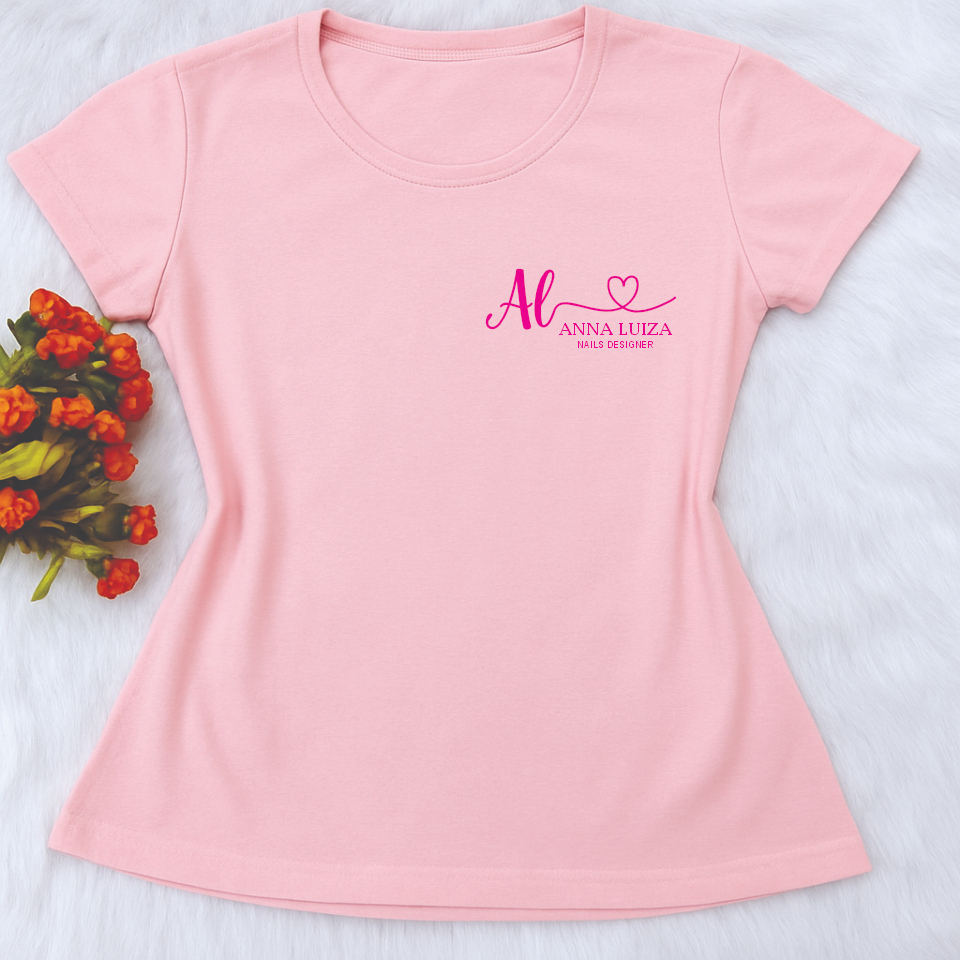 Camisa Personalizada ROSA BEBÊ Com Sua Logo - PROFISSÃO, LOJA, EMPRESA