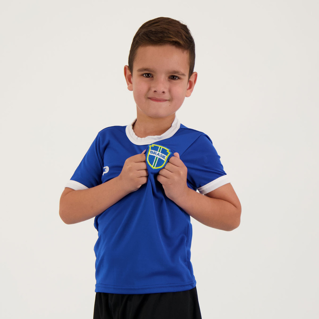 Camisa Placar Brasil Brasão Azul Infantil