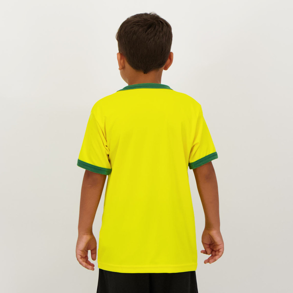 Composição: 100% PoliésterCor predominante: AmarelaIndicado para: CasualOrigem: NacionalGênero: UnissexEscudo: BordadoManga: CurtaGola: CarecaDimensões aproximadas (A x L):04 A 06 ANOS (PP): 43 x 31 cm06 A 08 ANOS (PI): 50 x 38 cm08 A 10 ANOS (MI): 58 x 44 cm10 A 12 ANOS (GI): 65 x 48 cm