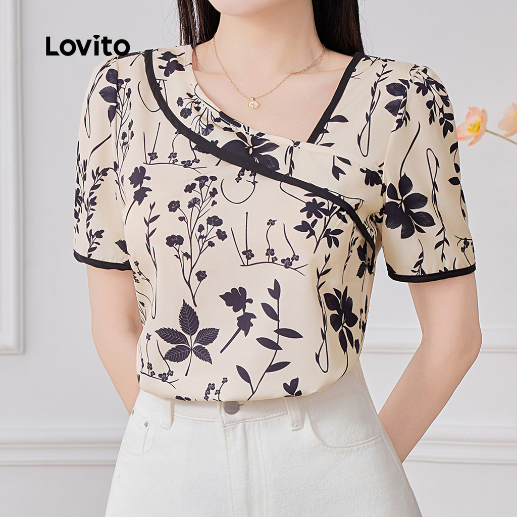 Camisa pulôver estampada com decote assimétrico em cor contrastante-BLB149P1D1091
