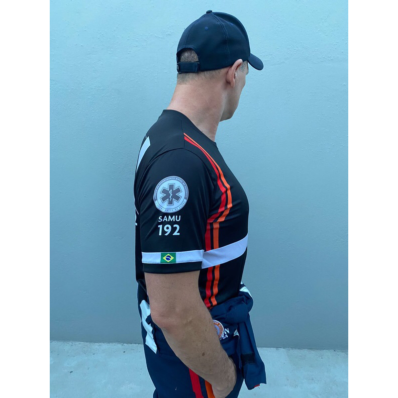 Camisetas masculina na cor preta do Samu (Serviço de Atendimento Móvel de Urgência) obs: mandar se você comprar com a opção de colocar seu nome na camisa por favor enviar imediatamente chat ou na descrição da compra o nome por causa do prazo de envio. -Tecido Dryfit, de qualidade -Reforçado de ombro à ombro -Gola redonda Dimensões: P: altura 64, largura 43 M: altura 67, largura 47 G: altura 70, largura 54 GG: altura 74, largura 54 XG: altura 80, largura 65