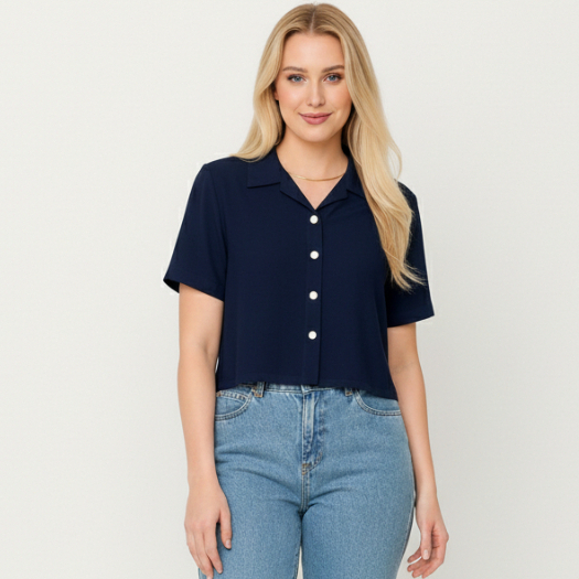 Camisa Social Feminina Manga Curta 100% Viscose com 5 Botões Dourados - Elegante e Confortável 4368