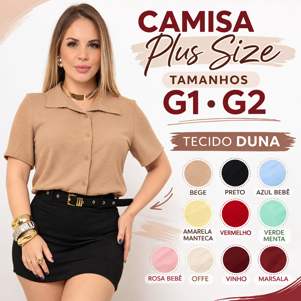 Camisa Social Feminina Plus Size Tecido Duna Lisa de Botões Transparentes Super Confortável