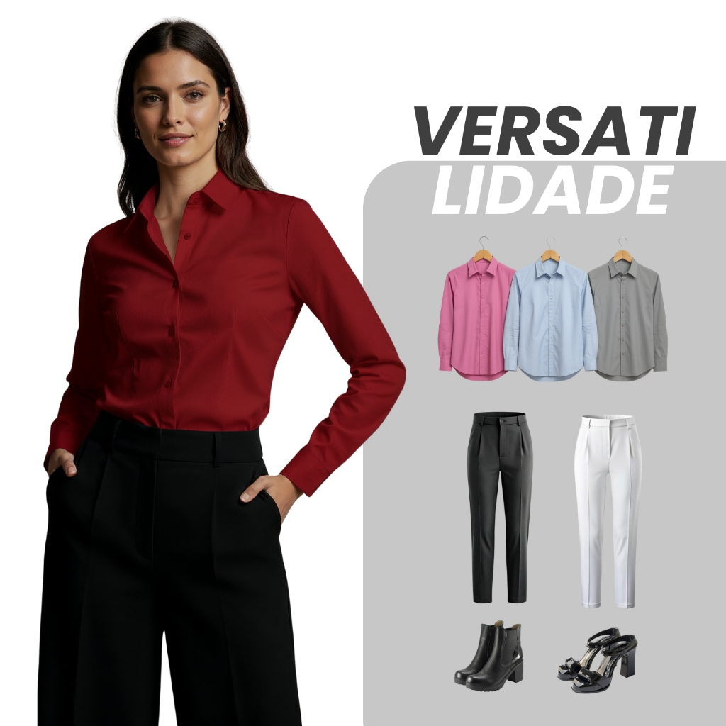 "CAMISA SOCIAL FEMININA SLIM FIT BLUSA SOCIAL FEMININA MANGA LONGA" Atenção: Novidade! Estoque limitado e últimas unidades. Camisa estilo moderno com visual elegante, fresca e confortável. Oferta imperdível, compre agora. COMPRE AGORA! Benefícios do produto - Qualidade premium - Durabilidade elevada - Estilo sofisticado - Versatilidade social casual - Conforto no uso diário - Entrega rápida Tabela de Medidas - Todas as informações estão nas fotos. Ficha técnica - Tecido Poliester c/elastano - Manga Longa - Costura reforçada linha ultra resistente - Produto 100% nacional Perguntas recorrentes - Uso social e casual - Escolha o tamanho pela tabela - Envio em até 24h - Garantia de 30 dias - Compra segura GARANTA A SUA AGORA!"