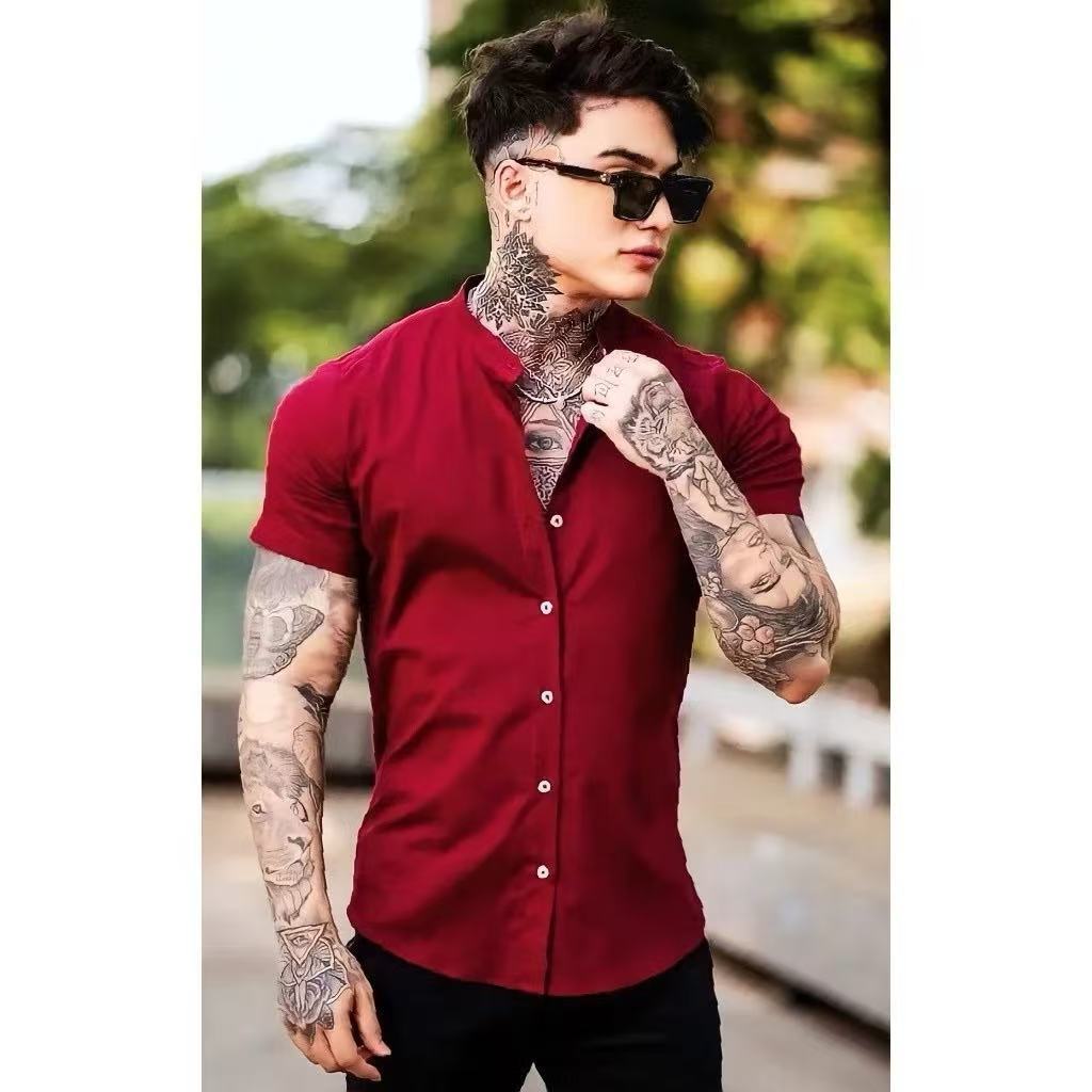 Camisa Social Gola Padre Masculina Slim Fit Manga Curta