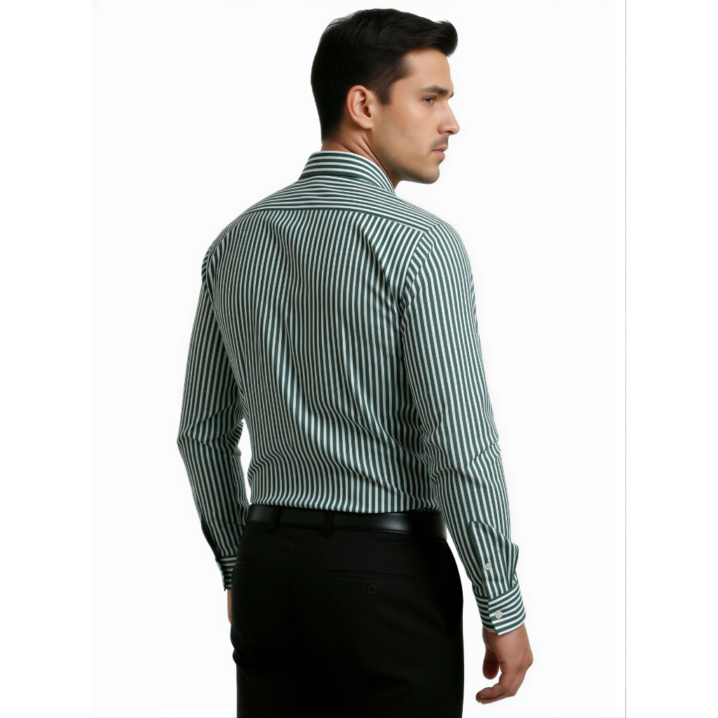 Camisa Social Listrada de Manga Longa com Acabamento Refinado