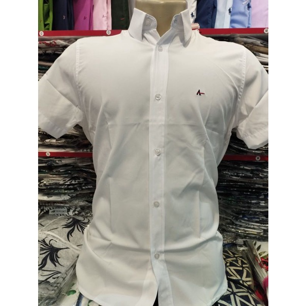 camisa social manga curta slim fit com elastano não amassa passa fácil