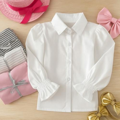 Camisa Social Manga Longa Com Franzido No Punho Para Meninas