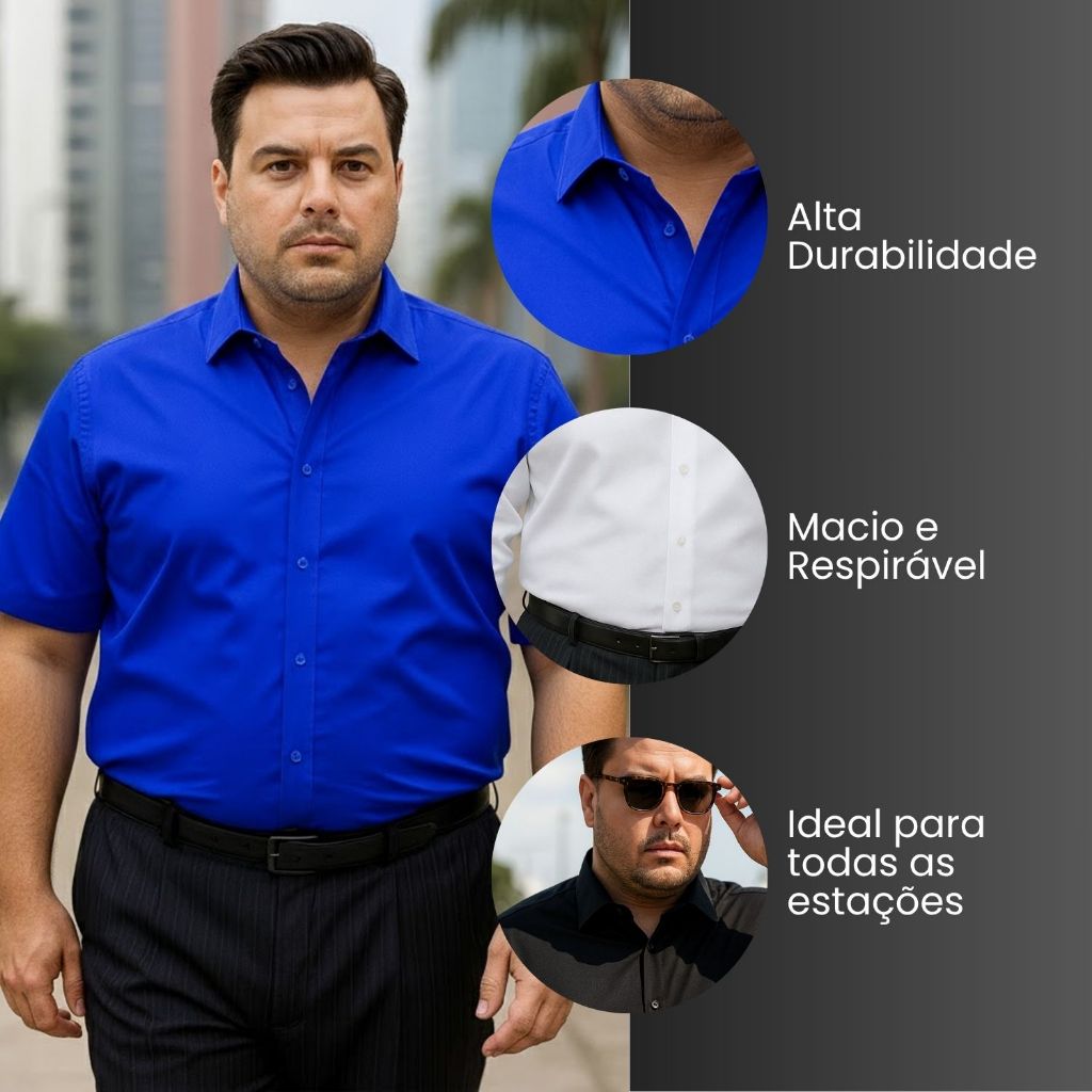 Camisa Social Masculina Manga Curta Lisa Plus Size