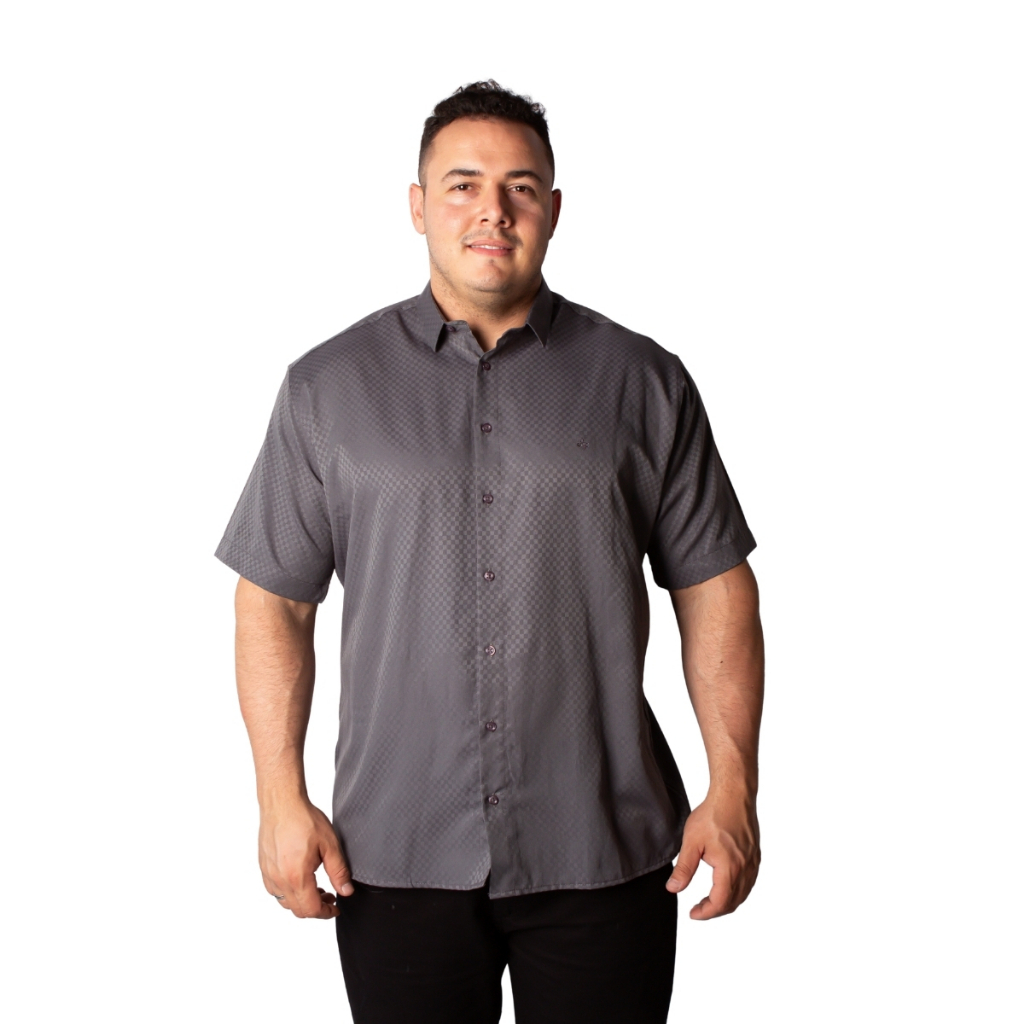 Camisa Social Masculina Manga Curta Maquinetada Plus Size