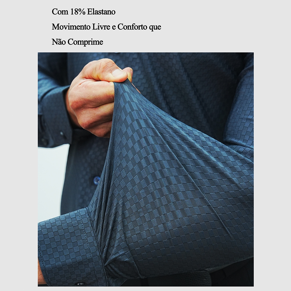 Camisa Social Masculina Slim fit Luxo Não Amassa e Respirável, Tecido Xadrez Malha Moda 18% Elastano