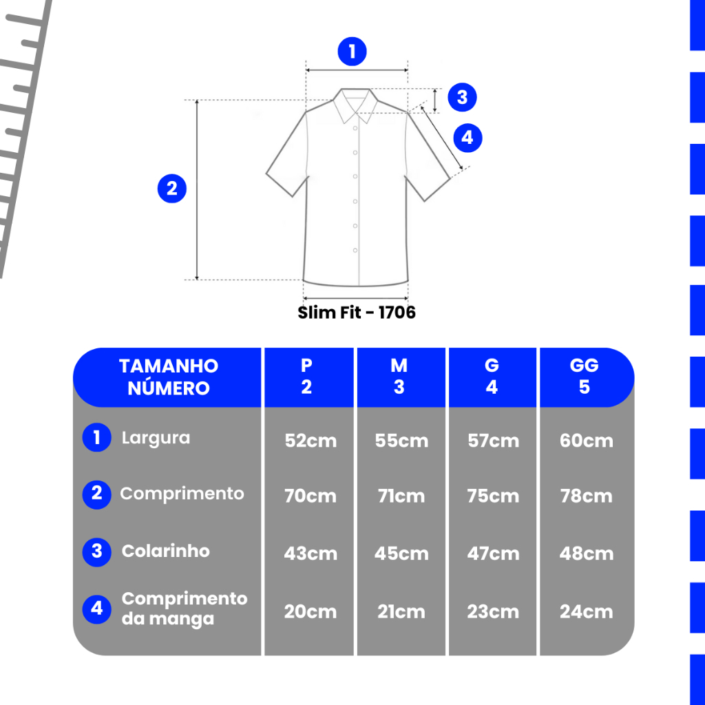 Bem vindo(a); Somos da Equipe SDJ Store; Aqui vai alguns detalhes importantes; POR QUE LEVAR ESSA CAMISA? » Tecido: 100% Microfibra, muito leve e com alta durabilidade. » Tecido de toque agradável e ótima sensação térmica. » Secagem rápida após a lavagem. » Veste super bem, valorizando o desenho do seu corpo. DIFERENCIAIS: » Atendimento Premium: Aqui você é prioridade. » Caso não fique satisfeito tem seu dinheiro de volta. » Enviamos pelo Correios em até 24hrs. » Confecção própria com mais de 15 anos de mercado. » Produto 100% nacional, sua compra é feita direto da fábrica. Camisas em modelagem SLIM, um pouco mais justa que o tradicional, MEDIDAS: Tamanho Brasileiro (cm) Busto Ombro Comprimento Largura P 100 42 70 52 M 104 43 71 55 G 107 44 75 57 GG 111 45 78 60 * Pode haver variação de 01 a 02 cm. GARANTIAS: » Não gostou? Você tem 30 dias pra fazer a devolução gratuitamente. » Garantia contra defeito de fabricação a ser avisada em até 2 dias após o recebimento (evidência de mal uso não cobre). Aqui sua satisfação é a nossa alegria. EQUIPE SDJ STORE