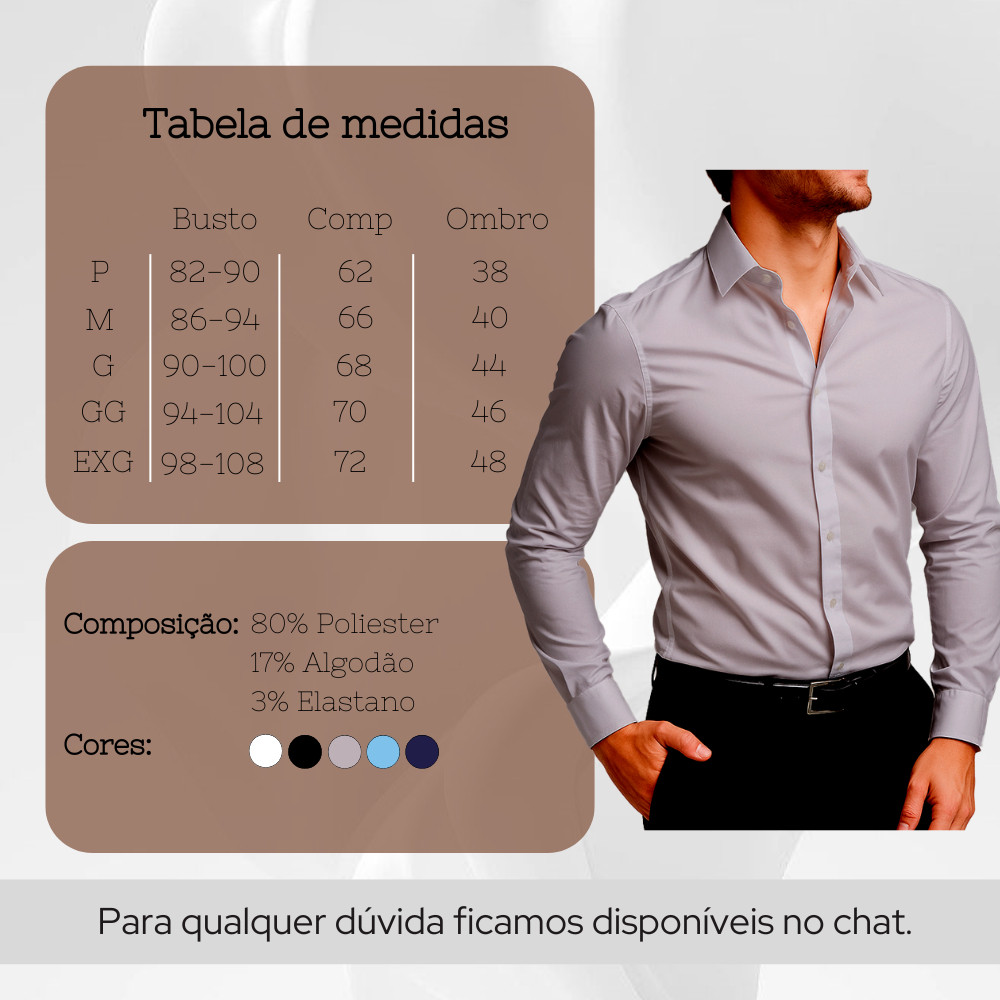 Apresentamos a Camisa Social Masculina Slim Fit Premium Manga Longa da marca Fashion Need, perfeita para compor looks sofisticados em diversas ocasiões. Seu design moderno, confere um toque de elegância ideal para eventos formais e informais, como festas, casamentos e reuniões de negócios. Fabricada em poliéster de alta qualidade, essa camisa é não apenas estilosa, mas também confortável, permitindo liberdade de movimento ao longo do dia. O corte slim fit proporciona um caimento ajustado ao corpo, realçando a silhueta masculina de maneira discreta e charmosa. Versátil, pode ser coordenada com calças sociais ou jeans para um visual mais casual, sendo uma escolha certeira para homens que buscam um estilo refinado e prático. Seja para o escritório, formaturas ou encontros sociais, a Camisa 080 é uma peça indispensável no guarda-roupa masculino contemporâneo. Ao optar por esta camisa, você garante não apenas uma roupa, mas um investimento em sua imagem pessoal e profissional. Prepare-se para atrair olhares e elogios, destacando-se em qualquer ocasião com um estilo inconfundível e elegante.